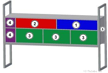 Die Ablageflächen können je nach Platz beliebig konfiguriert werden. Bilder geben nur nur ein Beispiel wieder.