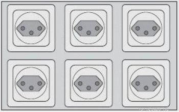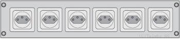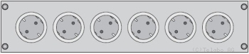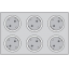 | Sechs Schutzkontakt Steckdosen in 19"-Einsatzplatte |