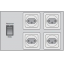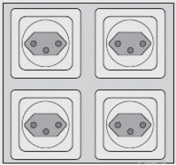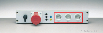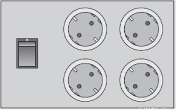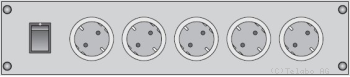 | Netzschalter und vier Schutzkontakt Steckdosen; Schalter über Sicherheits- und Schaltelement angeschlossen. |