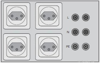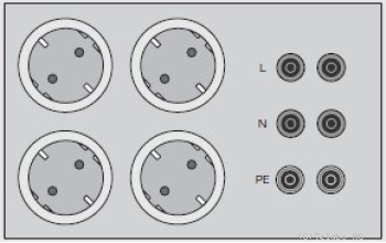 | Vier Schutzkontakt Steckdosen und zwei Mal 230V Netzbuchsen L, N, PE. |