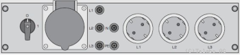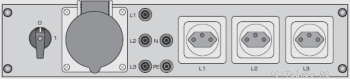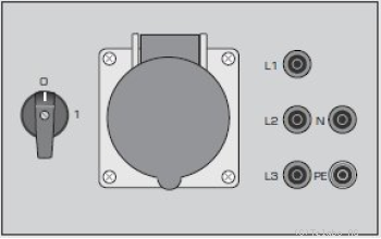 | Eine CEE Steckdose 400V/16A und Netzbuchsen L1, L2, L3, N und PE. |