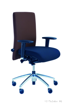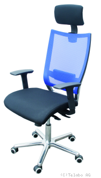 interessanter Drehstuhl mit Körpergewichtseinstellung auf hochwertigem Aluminium-Fusskreuz mit lastabhängig gebremsten Doppelrollen.